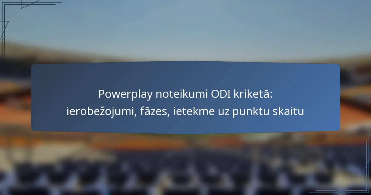 Powerplay noteikumi ODI kriketā būtiski ietekmē punktu gūšanas iespējas un stratēģijas gan sitēju, gan metēju komandām. Šie noteikumi rada specifiskas fāzes spēles laikā, kurās tiek piemēroti laukuma ierobežojumi, ļaujot palielināt punktu gūšanas potenciālu un veikt taktiskus pielāgojumus.